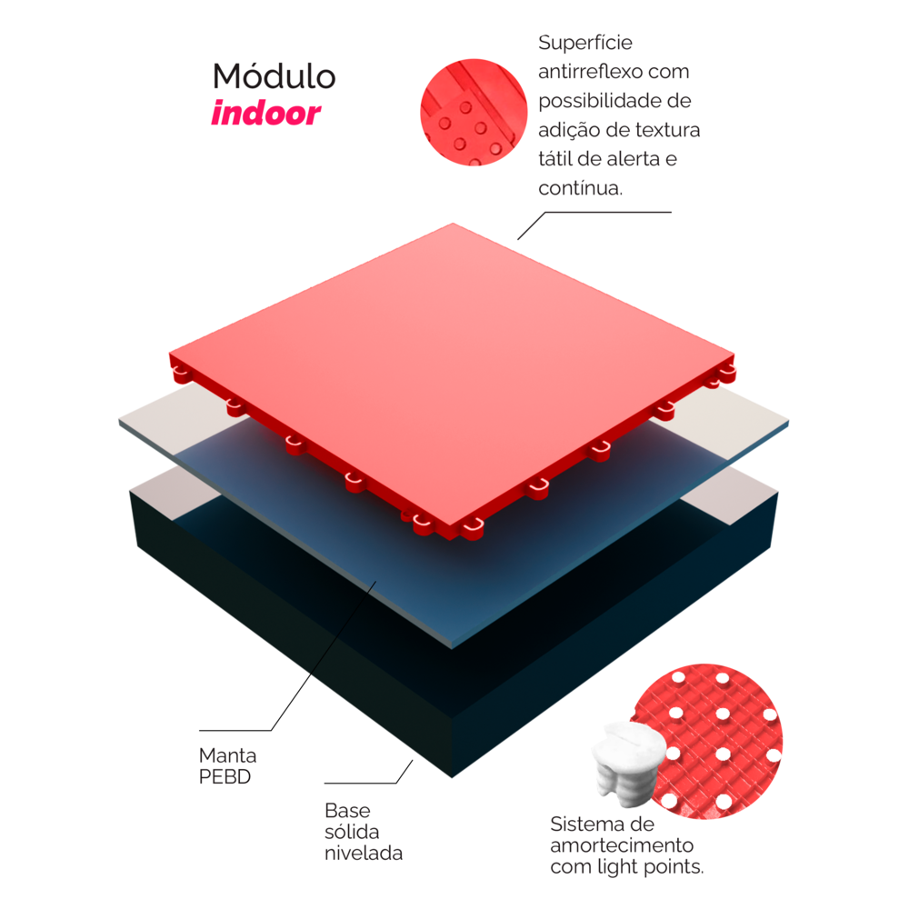 Sistema anti-derrapante, acabamento perfeito e ventilação para o gramado.